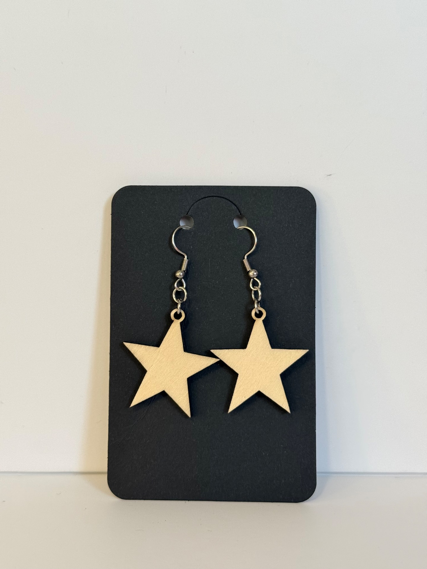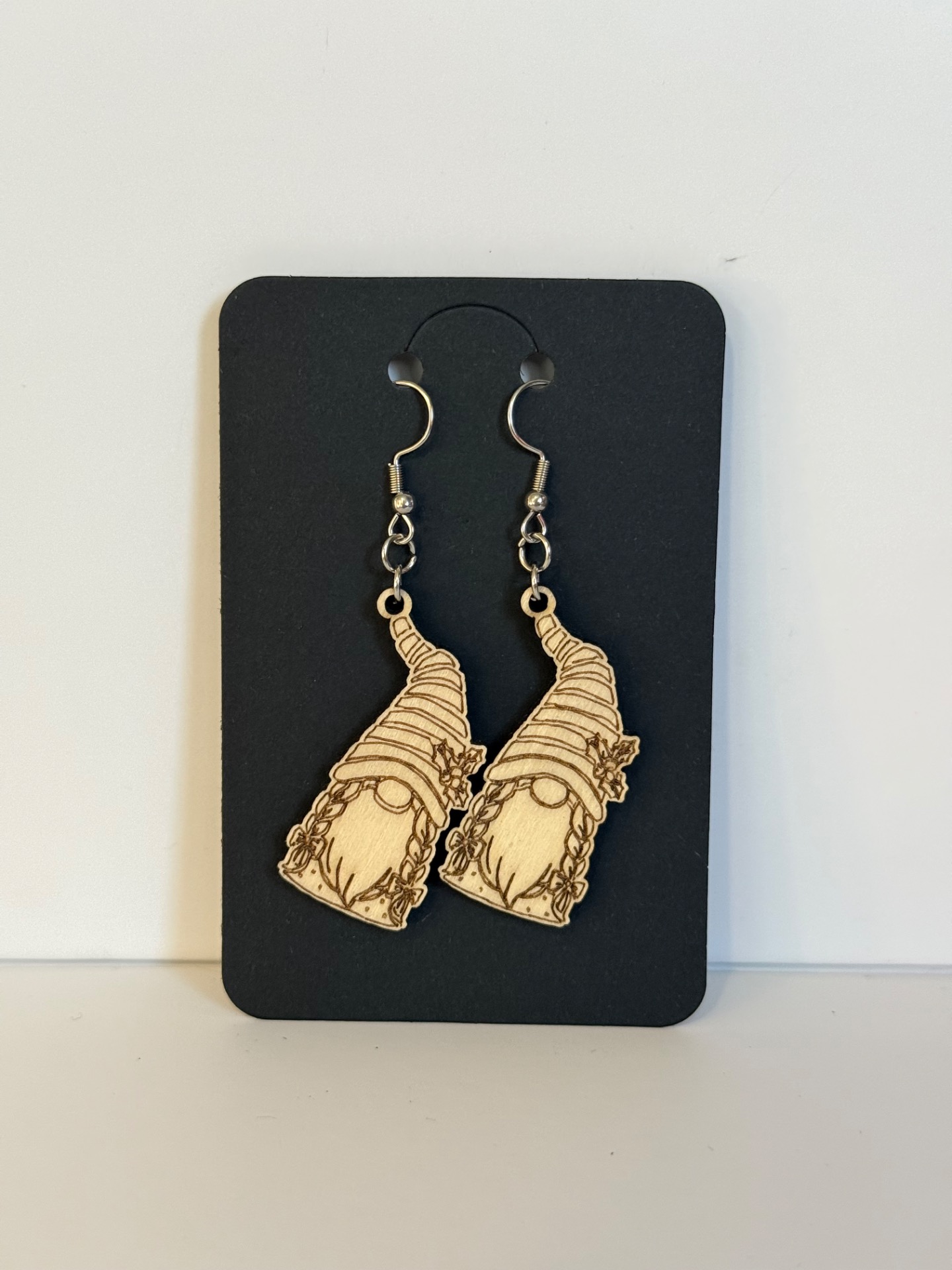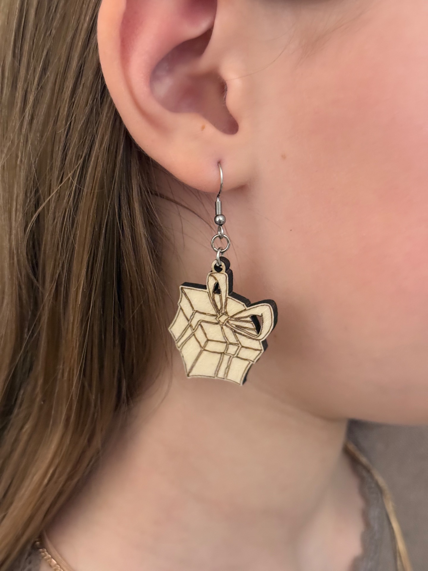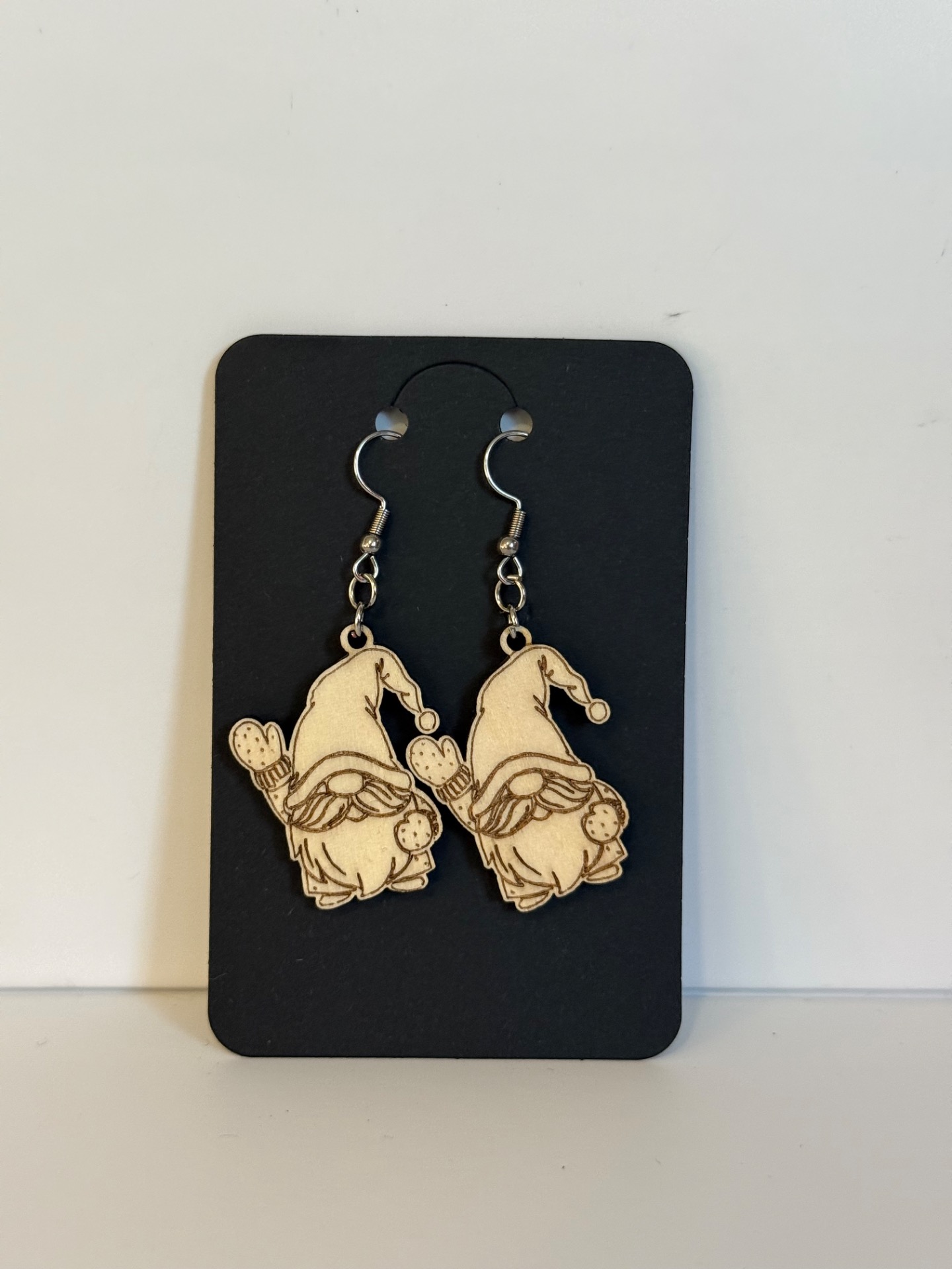Vanerista valmistetut jouluiset korvakorut. Korvakorun koukut on valmistettu ruostumattomasta teräksestä.