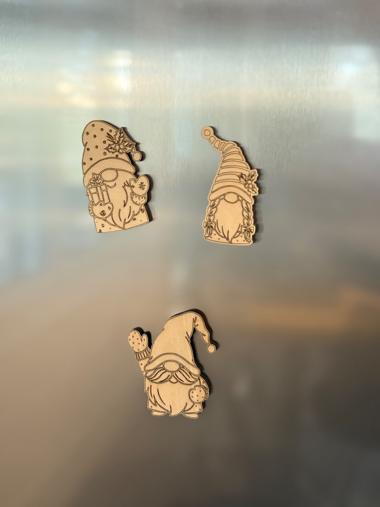 Vanerista valmistetut magneetit. Saatavana kolmella eri kuvalla.