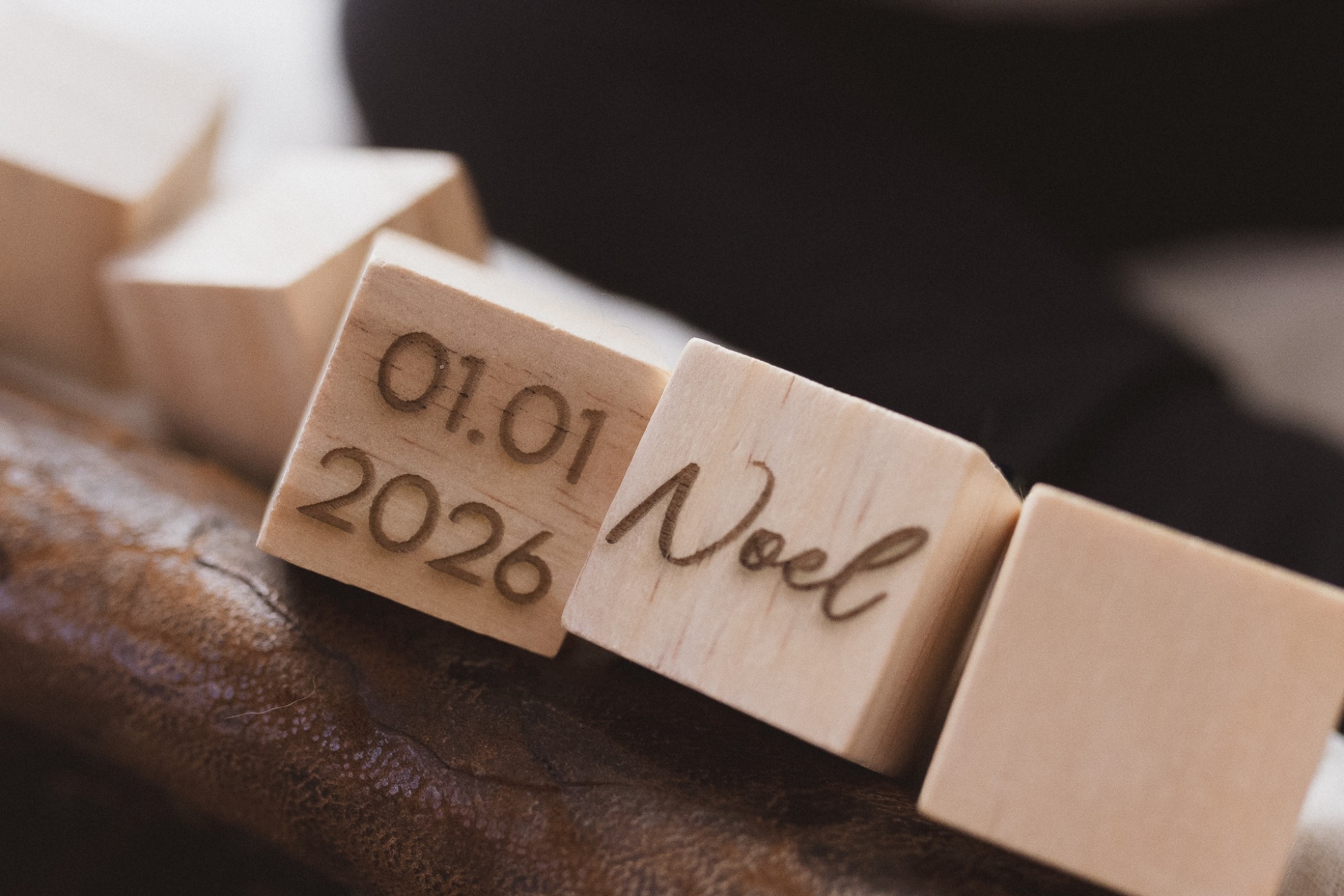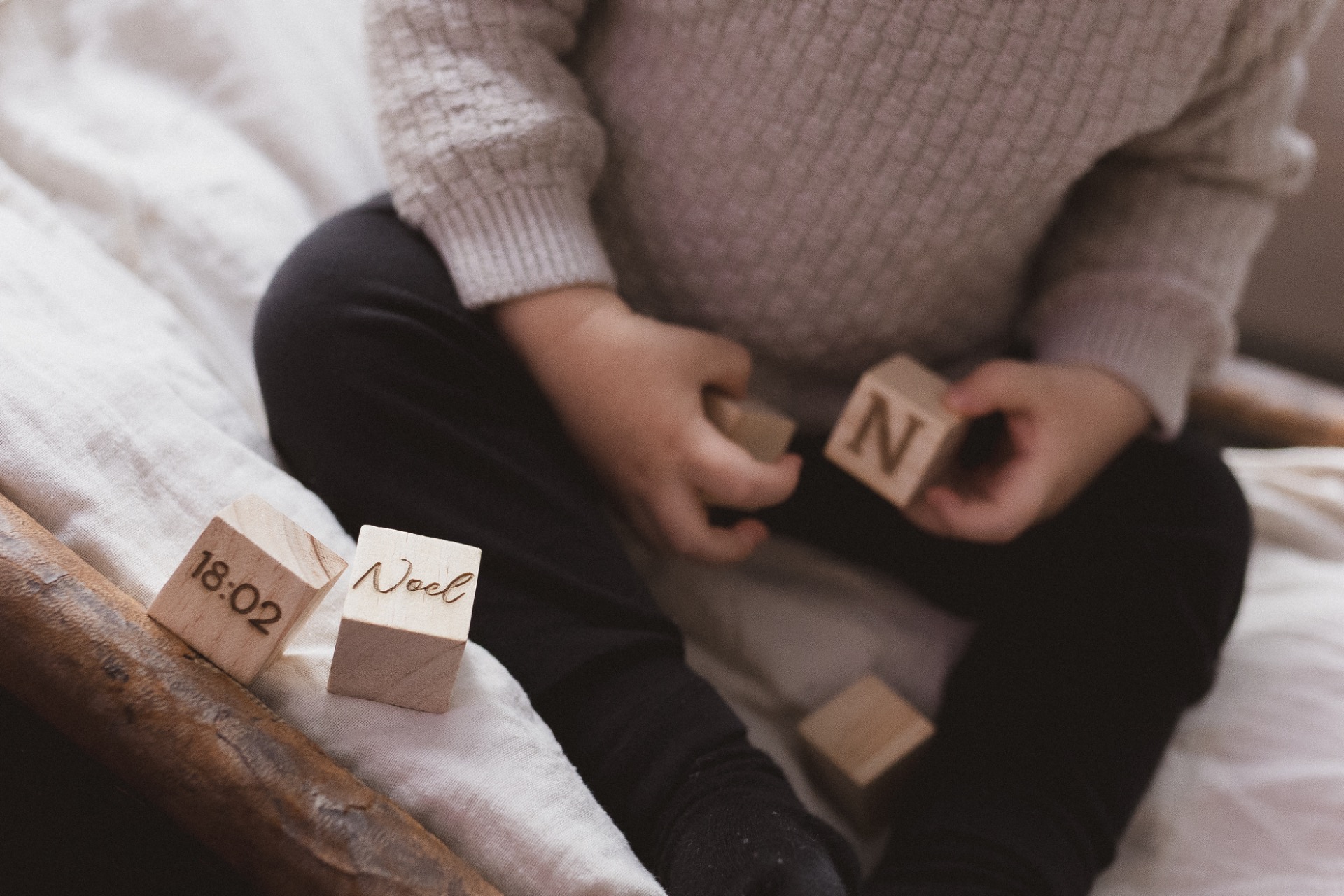 Nämä personoidut puupalikat kertovat vauvan syntymätarinan – tyylikkäästi ja koskettavasti.