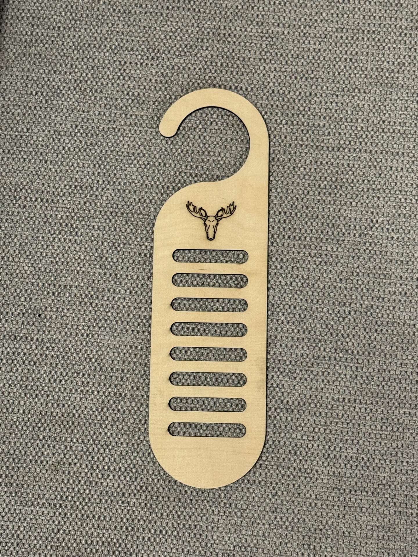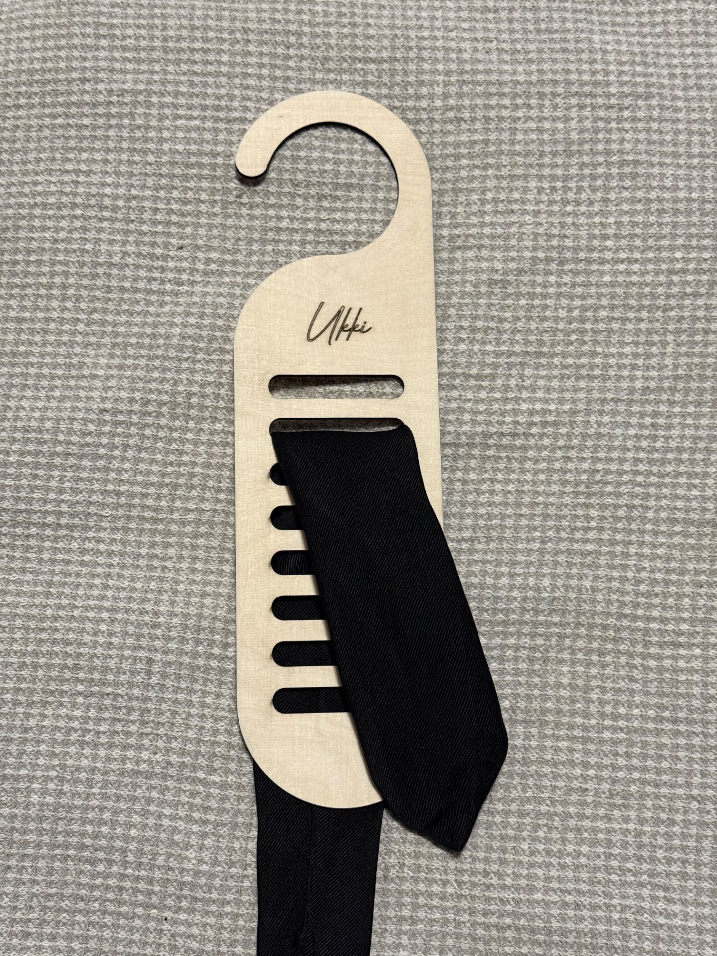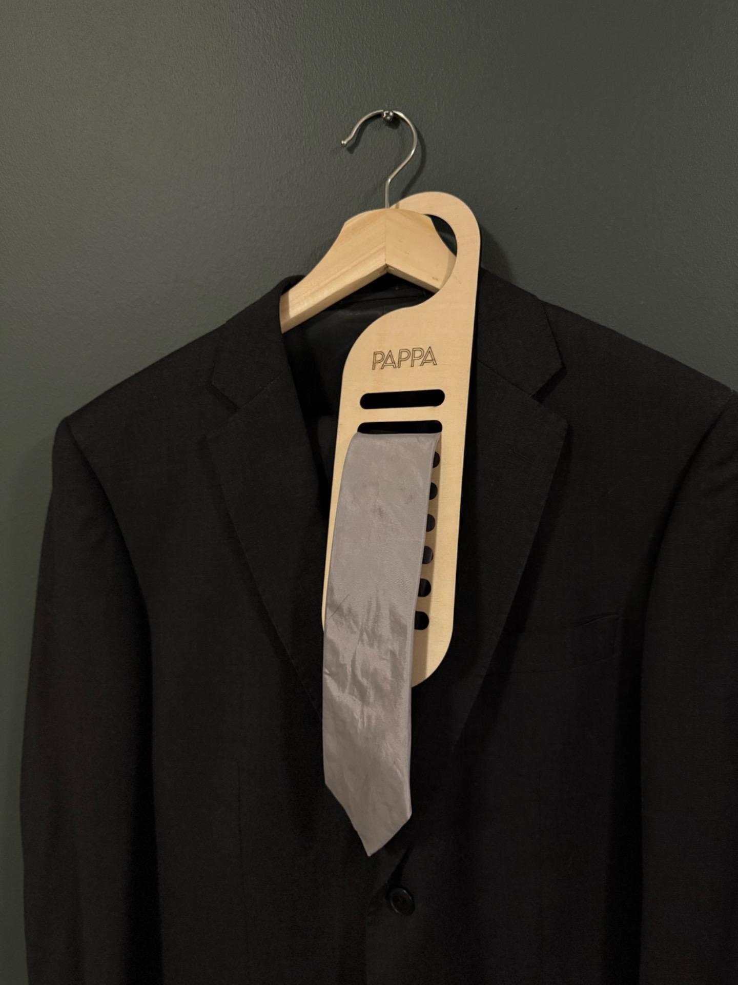 Tyylikäs ja käytännöllinen lahja isälle, isoisälle, puolisolle tai kenelle tahansa solmion käyttäjälle. Suomessa valmistettuun solmiohenkariin mahtuu 8 solmiota ja se on valmistettu suomalaisesta koivuvanerista.
