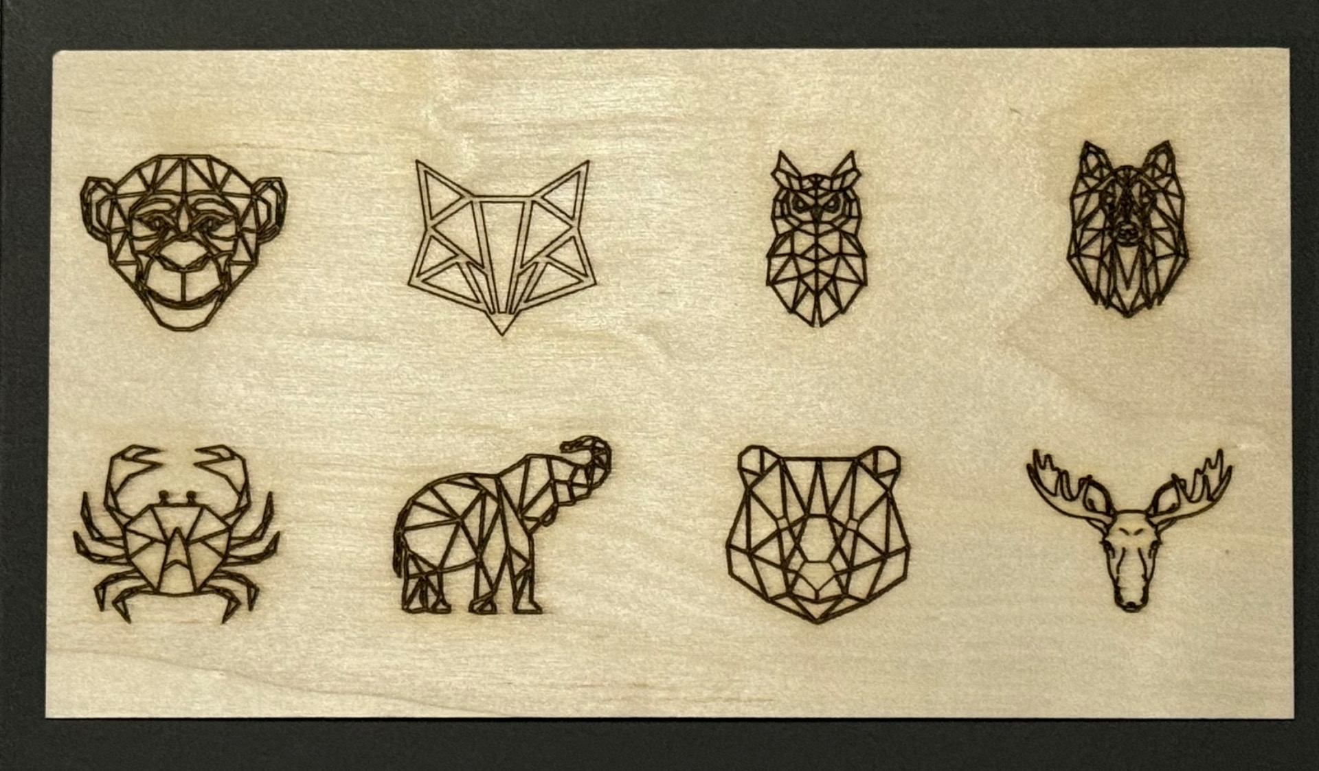 Kuvavaihtoehtoina: apina, hirvi, karhu, kettu, koira, norsu, pöllö ja rapu.